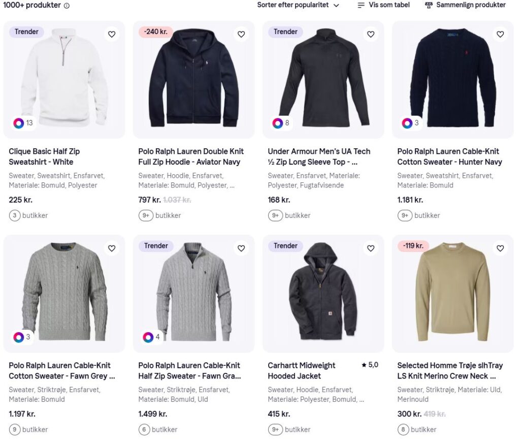Basis bomuldssweater/sweatshirt | 249–699 | 25–50% | Under 300–400 kr. for kendte kæder |
